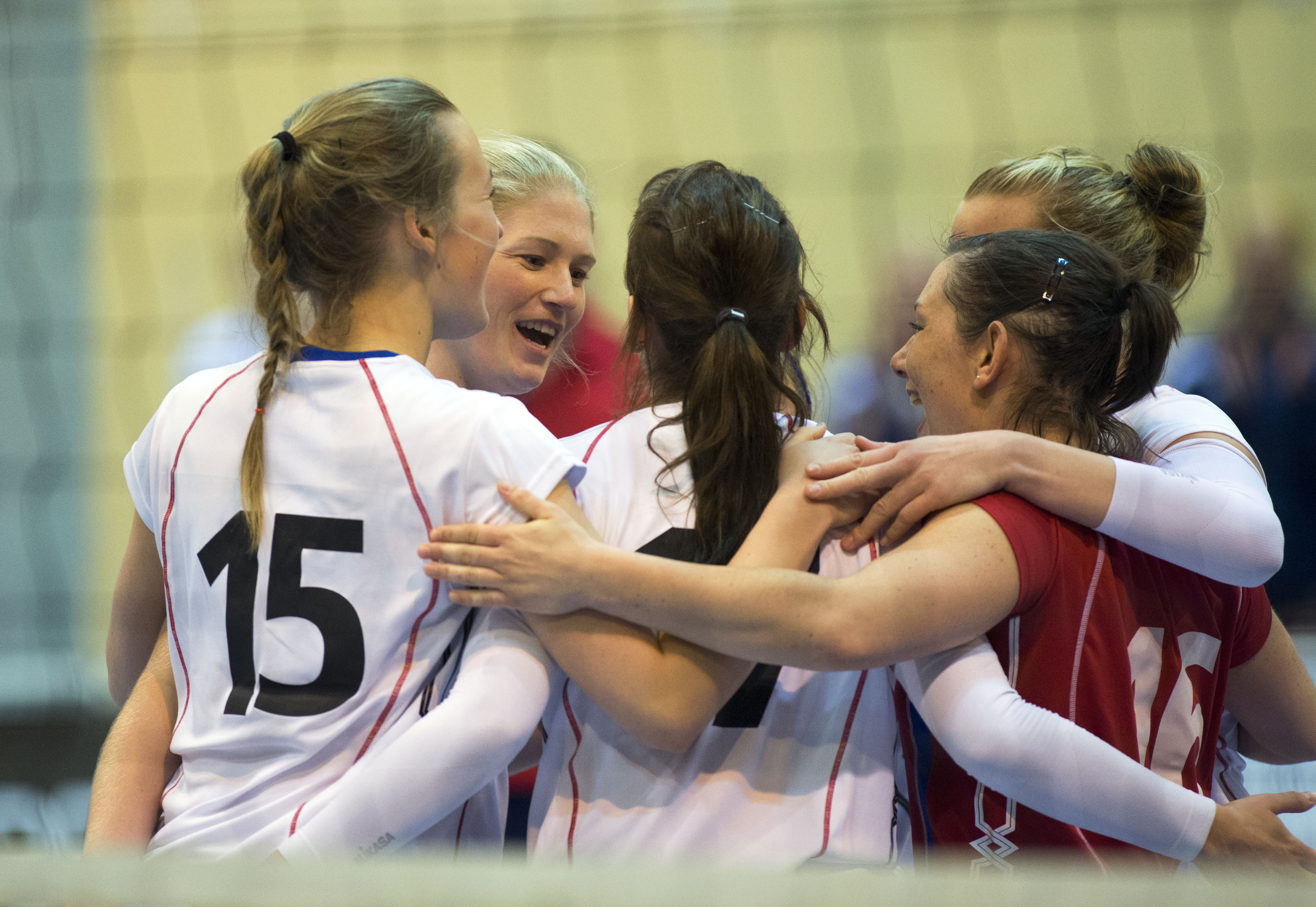 Mari Aase Hole med resten av landslaget 03/05/2014 / volleytomm Norge – Danmark 3-0 (25-22, 25-13, 25-19). Landskamp i Slagenhallen 3. mai 2014.