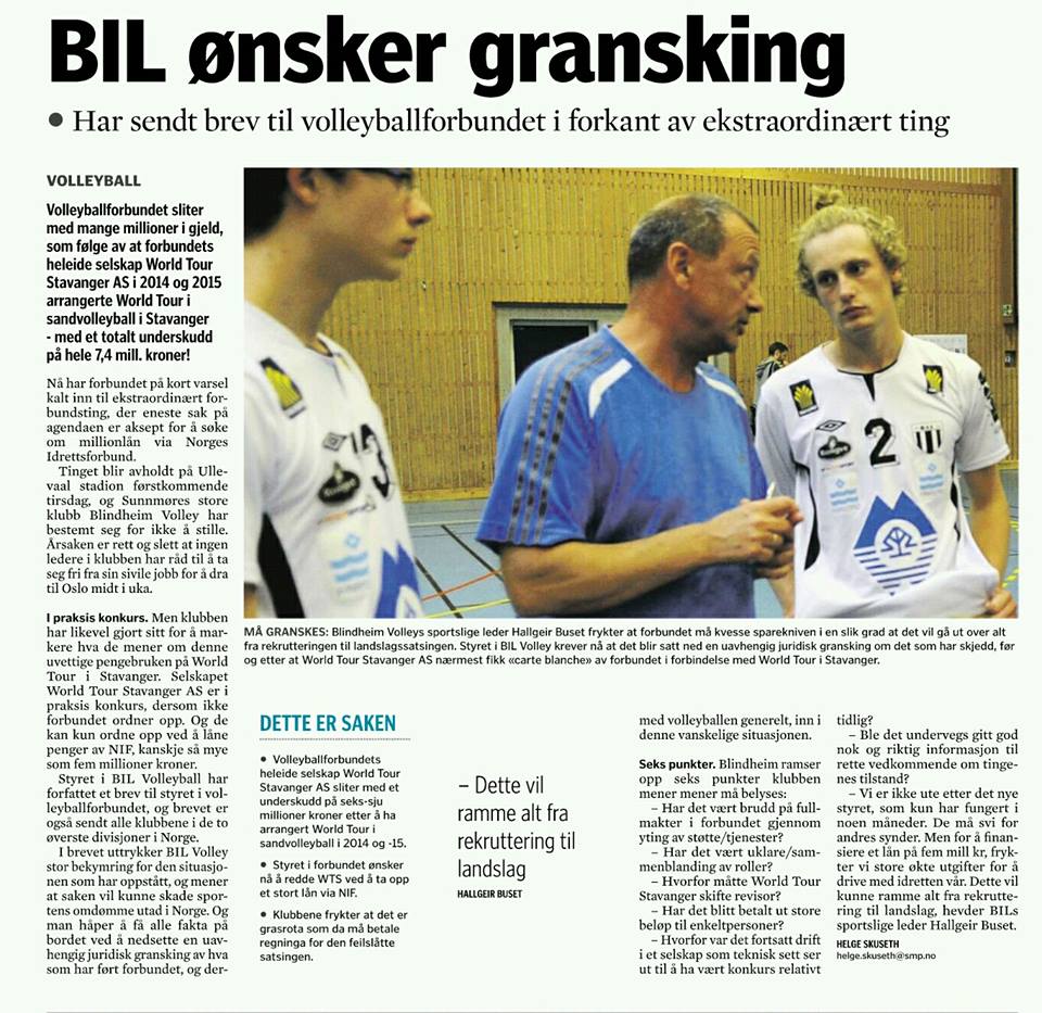 Det nærmer seg Ekstraordinært Forbundsting og blant annet styret i Blindheim har bedt om uavhengig granskning av de store underskuddene i forbindelse med sandvolleyball i Stavanger. Samtidig på sin Facebookside støtter styremedlem Knut Jarle Nygård i Blindheim styrets forslag med følgende begrunnelse.