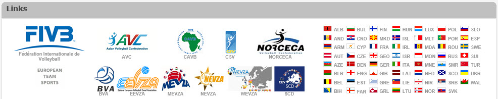 Nederst på siden er det også en fin oversikt over alle koblinger til andre volleyballorganisasjoner rundt om i verden.